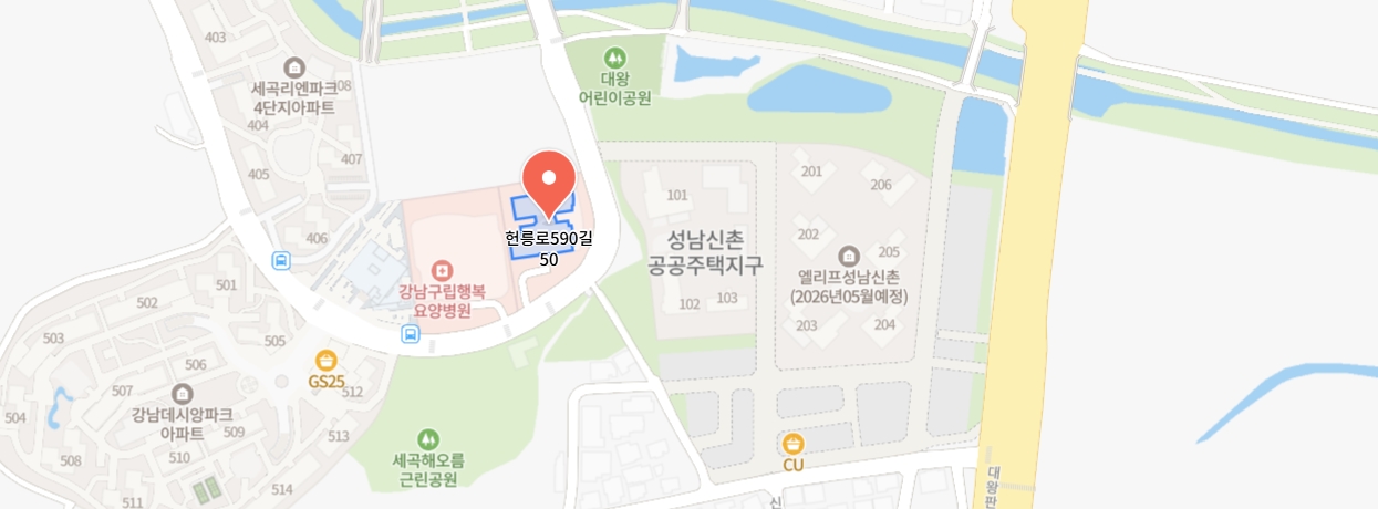 - 주소위치: 서울특별시 강남구 헌릉로590길 50 (세곡동)