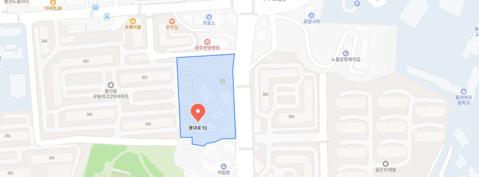 - 주소위치: 광주광역시 남구 용대로 91 (봉선동)