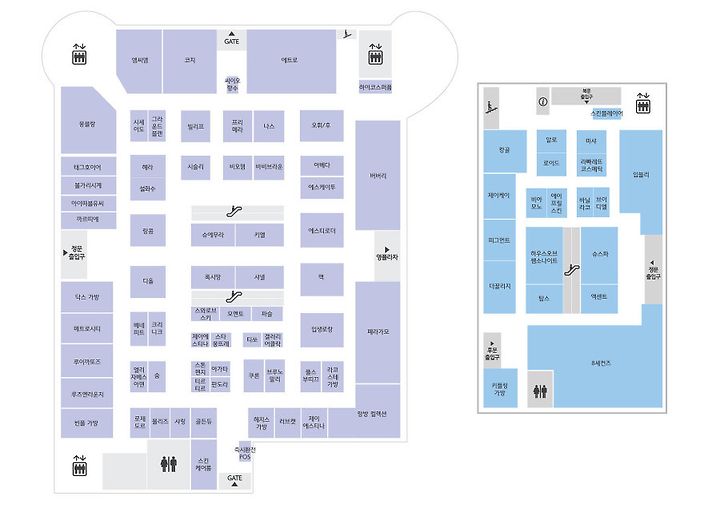 패션잡화와 해외명품관으로 꾸며진 1층 매장들의 기본 정보,위치정보,편의시설을 담았습니다.